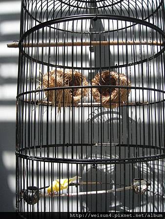日上三竿, 另外兩隻文鳥, 依舊好夢正酣. 愛睡的鳥兒沒蟲吃.